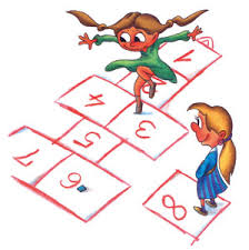 Desenhe no chão um diagrama com quadrados, intercalando quadrados solitários com duplas e numerando cada um de 1 a 10. No topo, faça uma meia-lua – este será o "Céu". Antes da casa número 1, outra meia-lua: o "Inferno".